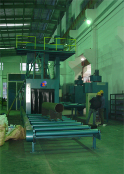 我公司設(shè)計(jì)制造的通過(guò)式拋丸機(jī)已調(diào)試完成,通過(guò)驗(yàn)收投入使用;它能夠?qū)μ幱谠紶顟B(tài)的鋼材表面施以強(qiáng)烈拋丸,清除其銹斑和焊渣及氧化層;使之獲得一 定光潔度均勻一致的金屬光澤表面,以便去除應(yīng)力,提高鋼結(jié)構(gòu)及鋼材表面涂飾質(zhì)量與防腐蝕性能。適用于金屬結(jié)構(gòu)焊件、鋼制品、鐵路車輛、工程機(jī)械橋梁制造業(yè) 的去應(yīng)力及表面除銹。