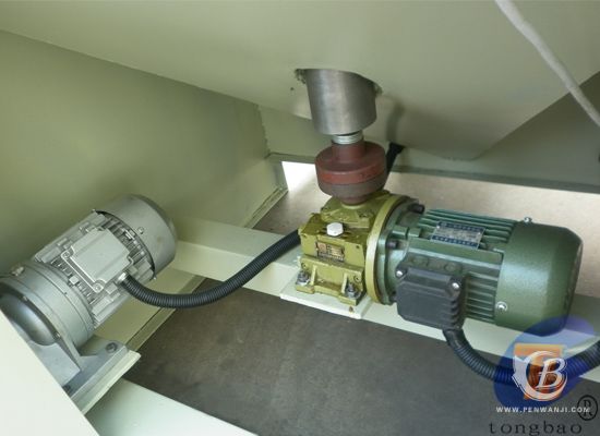 帶動工作的電動馬達,左邊銀白色馬達為控制自動搖擺噴槍所置,右邊綠色為控制主工作轉(zhuǎn)盤