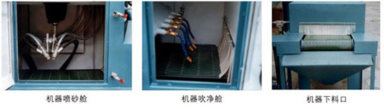 5,采用多槍噴砂,操作時(shí),僅需將工件置于輸送帶上,即可進(jìn)行自動(dòng)噴砂加工。操作十分簡單方便;